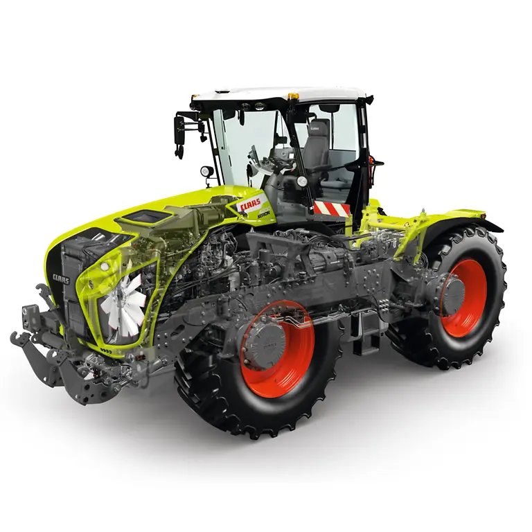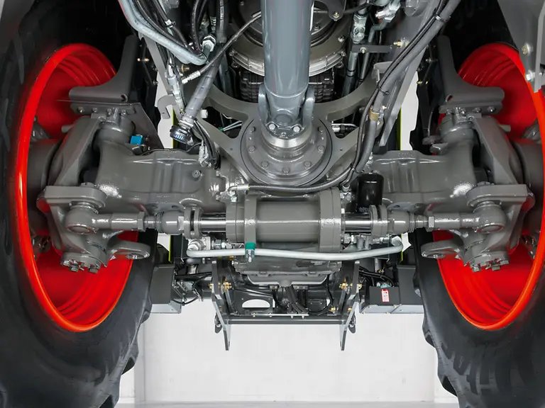 Along with being highly efficient, the drive assemblies are enormously robust, reliable under all operating conditions and have an impressively long service life. Thanks to the low input speed and low-speed concept, the XERION can work extremely efficiently in numerous applications. Since the front and rear axle drives are rigidly connected, no longitudinal differential is required.