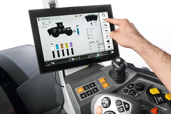 You've got everything under control with CEBIS. The height-adjustable armrest incorporates the 12" CEBIS touchscreen. All operating states are clearly displayed and you can adjust the machine settings in just a few steps.
