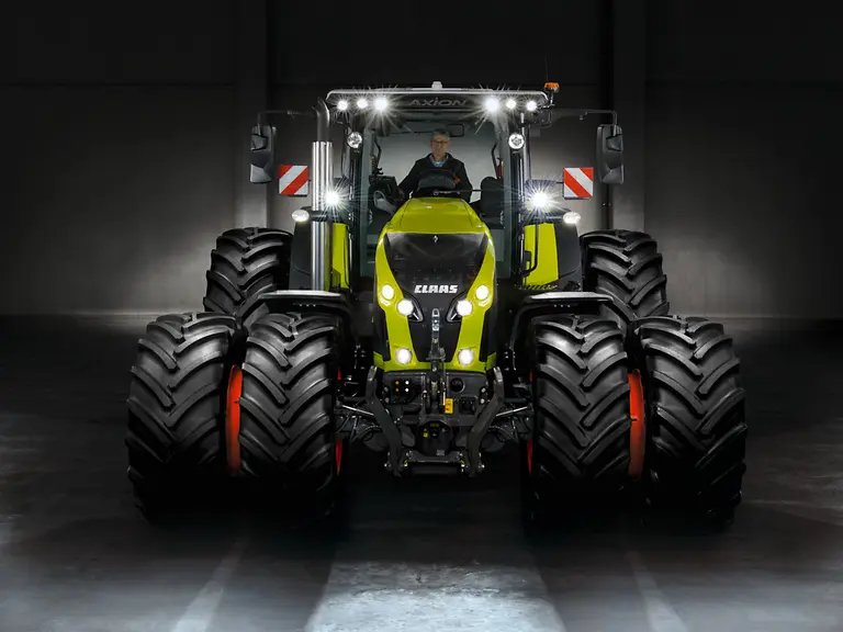 The rear tires on AXION 800 tractors can be up to 2.05 m in diameter. Tires up to 1.60 m diameter are used on the front axle. The numerous tire options make the AXION capable of any type of work. Even with the biggest tires (900/60 R 38), the tractor has an external width of less than 3.0 m, making it flexible on the road and gentle on the field.