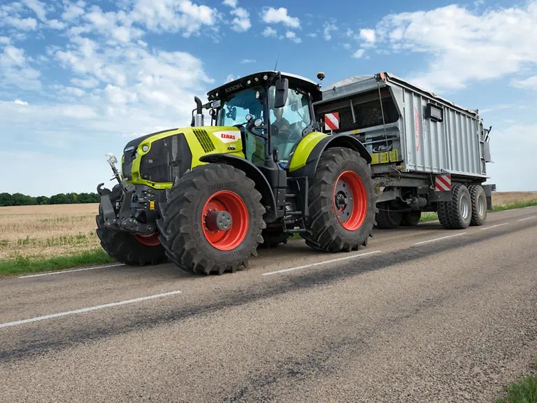 With engine speeds of 1,600 rpm at a top speed of 31 mph (50 km/h) and 1,300 rpm at 25 mph (40 km/h), AXION 880-820 tractors also demonstrate their capabilities in transport operations. If the