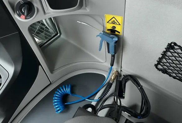 For quick and easy cleaning of the interior, the LEXION model series is equipped with a blow gun, with a 2-meter spiral hose in the cab.