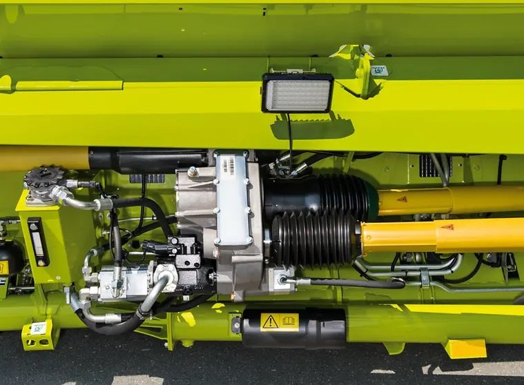The hydraulic reel drive automatically adjusts the reel’s torque to match the harvesting conditions, for example when the crop is lying flat. The automatic height control, which operates based on the specified values for pressure and sensitivity, helps maintain a continuous crop flow and prevents the tines from digging into the soil and causing the reel to come to a stop.